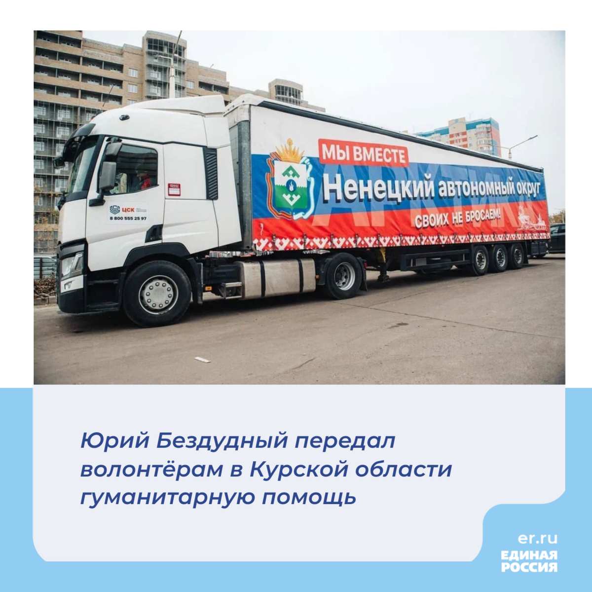 — Вместе с участником СВО Николаем Морозовым и Фаргатом Кунаккузиным, участвовавшим в восстановлении Каменки-Днепровской в Запорожской области, передали волонтёрам продукты питания, тёплую одежду и обувь. Это помощь для жителей Курской области, пострадавших от вторжения украинских неонацистов, — сообщил губернатор НАО.