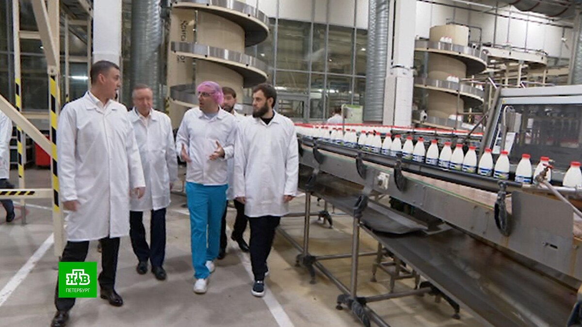 [ Смотреть видео на сайте НТВ ] В Петербург и Ленобласть с рабочим визитом приехал зампред правительства России. Дмитрий Патрушев обсудил развитие молочного производства и агропромышленного комплекса. Визит зампредседателя правительства Дмитрия Патрушева в Петербурге начался с посещения завода «Петмол» — одного из лидеров производства молочной продукции в стране. Вместе с ним работу предприятия осмотрел и губернатор Александр Беглов. Чуть позже на встрече с журналистами и стало понятно, почему первой точкой визита стал «Петмол» и как в дальнейшем изменится ассортимент продукции завода. После того как западные партнеры, уйдя из России, заставили «Петмол» выплывать в одиночку, были опасения, что молочный бизнес предприятия упадет. Эту фразу на брифинге произнес Дмитрий Патрушев. До этого он посетил цех, где разливается и упаковывается так хорошо знакомая горожанам продукция. Экскурсию провел директор филиала Ренат Насиров. После осмотра Дмитрий Патрушев уже общался с генеральным директор