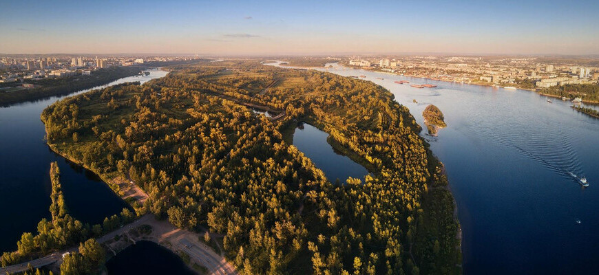 Парк, занимающий территорию живописного острова. Локация, соединяющая в себе естественную природу, современные инсталляции и ландшафтный дизайн. Парк с яблоневым садом, дендрарием и зонами для пикника. Остров и парк с одноимённым названием занимает порядка 7 км² суши. Изначально развитие парка было связано со спортивным направлением. Подразумевалось, что остров станет площадкой для любителей активных видов спорта. На территории были созданы широкие беговые тропинки и спортивные площадки. Так парк стал любимым местом для катания на велосипедах, занятий бегом и тренировок на свежем воздухе. В настоящее время на острове можно поиграть в футбол, настольный теннис, волейбол, баскетбол, стритбол и прочее. В зимний сезон парк превращается в огромный каток. Кстати, самый большой в городе. Здесь даже оборудуют специальную лыжную трассу для самых заядлых спортсменов. В летний сезон остров посещается в качестве просторного пляжа с чистым берегом и удобным заходом в воду. Вся территория парка поде