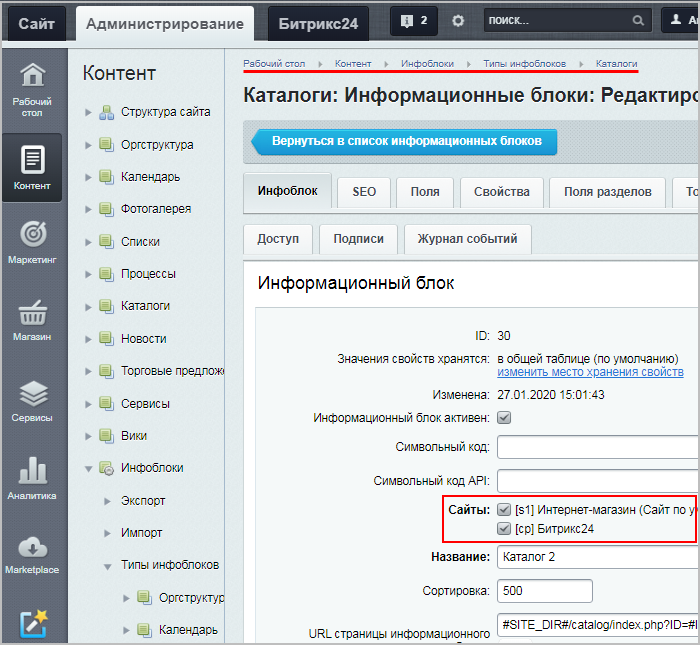 Подключение модуля инфоблоков и работа с разделами в 1С-Битрикс