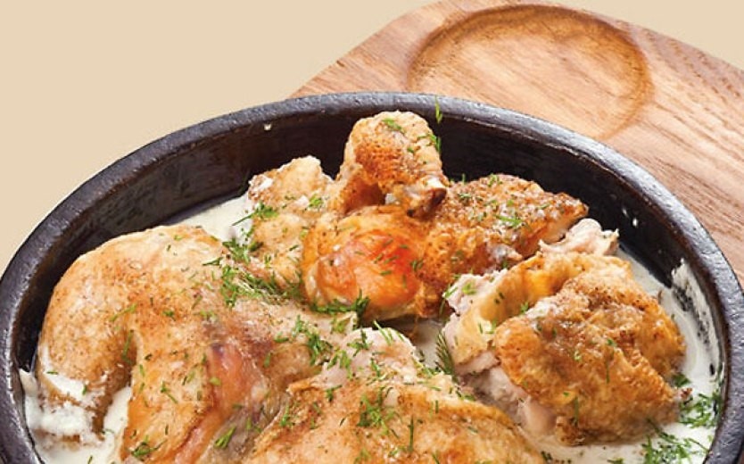 Один из таких шедевров – цыплёнок чкмерули (შქმერული).