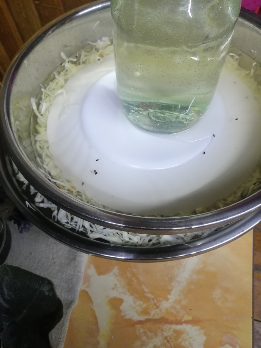 Пока картошка готовится, думаю, нашинкую капусту. Для засолки.