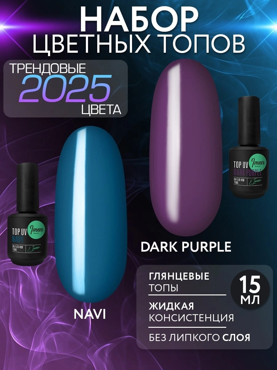 Топ Navy и топ Dark Purple от IMEN теперь в наборе 😎 Топы удобной консинстенции,без липкого слоя и отлично подходят для тех, кто ценит время и хочет быстрый маникюр, минуя этап покрытия гель-лаком! Цена набора 1490₽