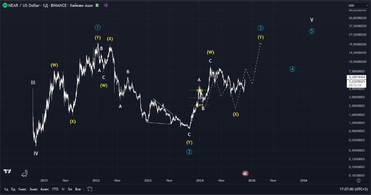 💰 NEAR Protocol Таймфрейм: D Продолжаем идти по стрелочкам, глобальный сценарий актуален. Ожидаю завершение коррекции и обновление глобального максимума 21.00. Криптовалютой торгую на бирже Bybit. #BTC #NEAR