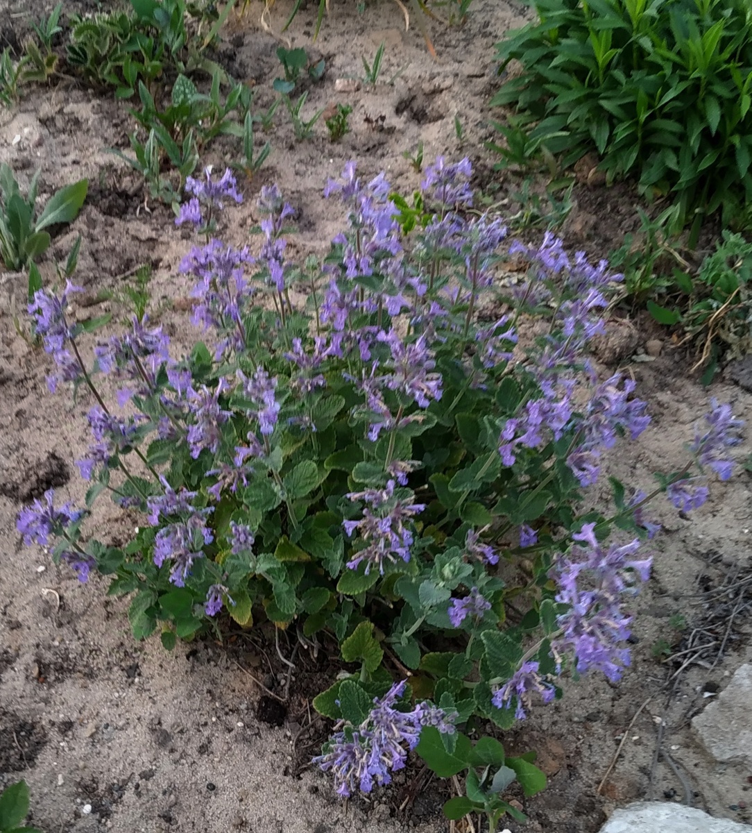 Первый котовник, который до сих пор растет у меня был выращен очень давно из семян. Когда начала писать эту статью, я попыталась собрать в кучу все мысли о нем, но ничего однозначного и четкого не получилось. Скорее всего дело в том, что в мае, июне он выглядит довольно декоративно. А весь остальной теплый сезон - так себе. Он вытягивается, разваливается, теряя форму и цветет жиденько. При этом прилично сеется. Вообщем не плохое растение и я не планирую там избавляться от него. Он легко выращивается семенами в открытом грунте и не сильно отличается от сортовых. Долгое время, глядя на свой видовой котовник, я присматривалась к сортовым. А в прошлом году я резко захотела перовскию и заказала ее за бонусы в ИМ Русский огород. Вместо перовскии прислали котовник, я это сразу поняла, но растение мне встало не дорого и мне стало интересно, что за сорт котовника, который нежиданно, не гаданно появился у меня. В итоге, и от этого котовника я совсем не в восторге: он вырос огромным и та