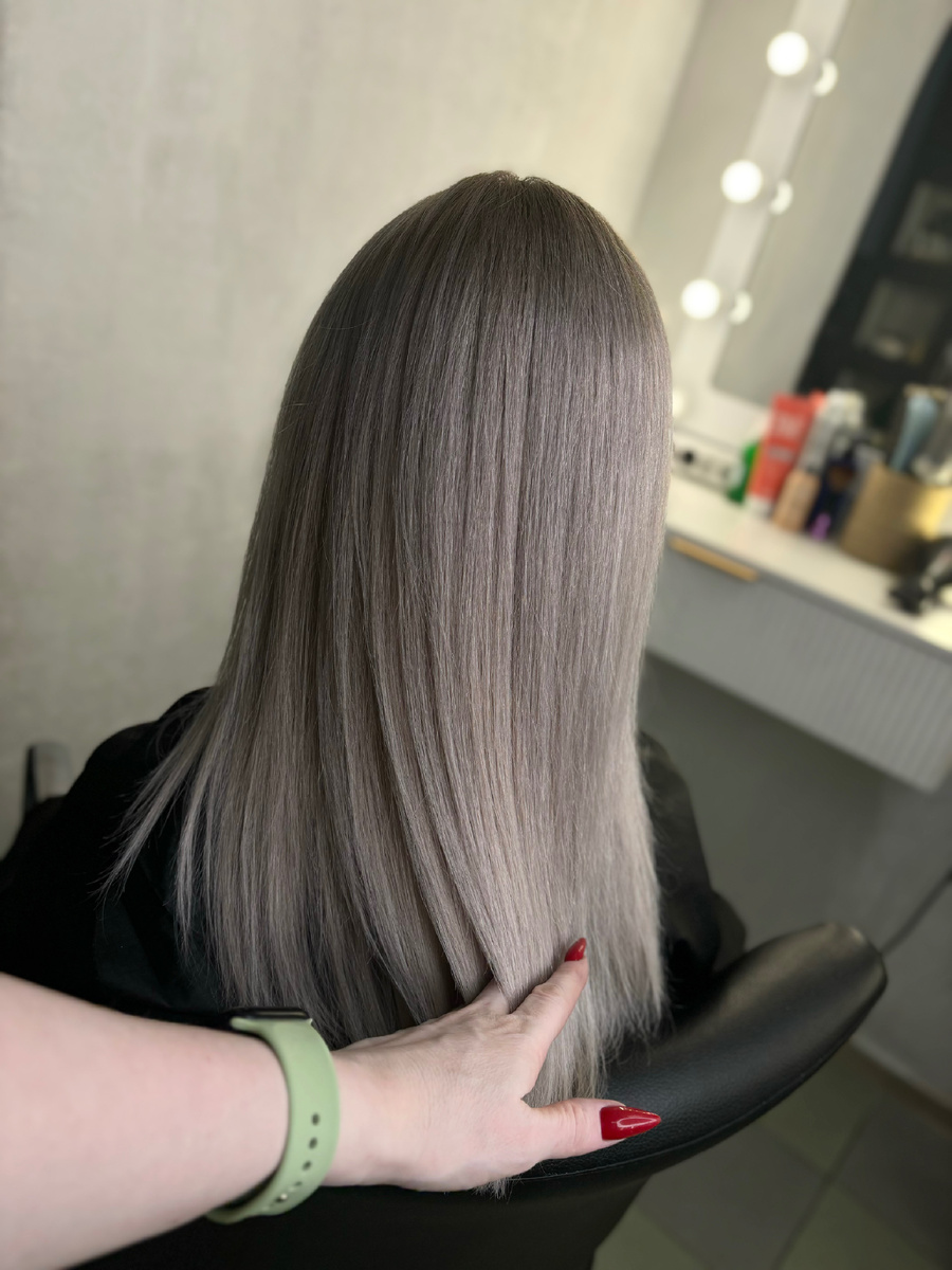* Устранение нежелательных оттенков: После осветления или окрашивания часто появляются нежелательные желтые, рыжие или другие оттенки. Тонирование помогает нейтрализовать их, придавая волосам более чистый и естественный цвет.