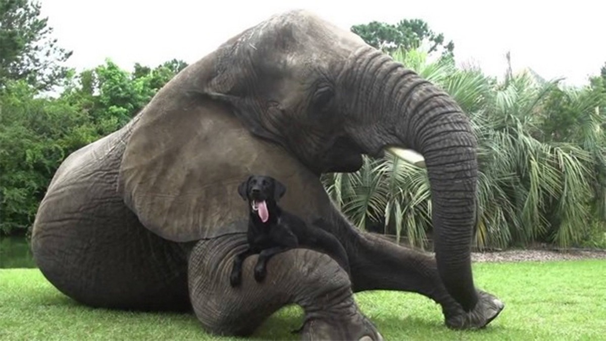 Слон и пес подружились в сафари-парке и удивили сотрудников