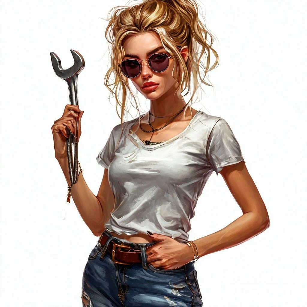 Блондинка деловито рассматривала что-то внутри, затем что-то потрогала, вытащила из своей машины внушительную сумку с инструментами и вновь занялась машиной.