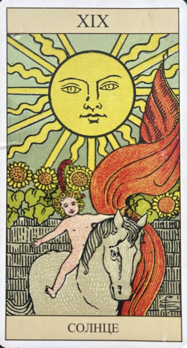 Солнце из Таро Уэйта — это символ радости, ясности и внутренней силы. Этот аркан учит нас тому, что счастье и успех приходят, когда мы уверены в себе, искренни и свободны от предрассудков. Солнце напоминает, что свет и энергия всегда рядом, что сила и радость есть в каждом из нас. Этот аркан вдохновляет на то, чтобы полностью довериться миру и себе, следовать за светом и открыто принимать все возможности, которые дает жизнь.