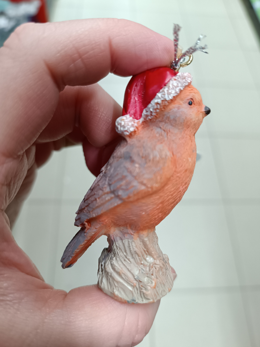 А начну сегодня с новогодних игрушек, очень понравились птички новые с шапочками от Деда Мороза.