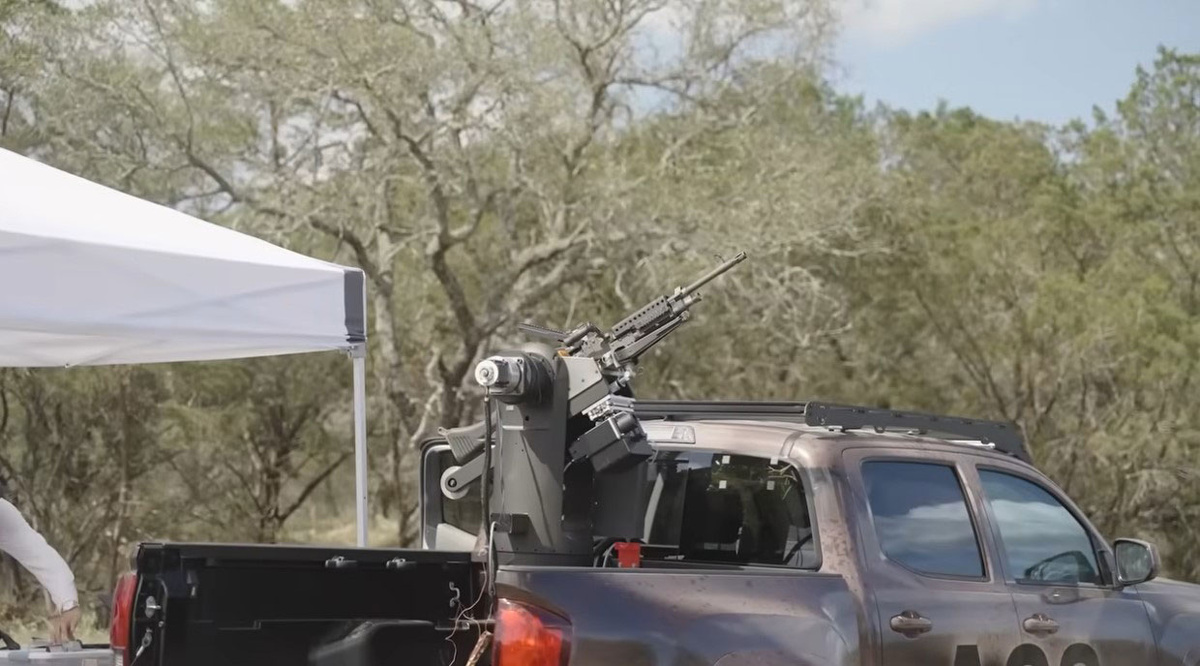 Компания Allen Control Systems успела быстро изучить опыт применения БПЛА в зоне СВО и буквально за несколько месяцев собрала автоматизированную турель с ИИ и пулеметом на борту. Установка получила название Bullfrog и может быть установлена на любую платформу, в том числе в кузов пикапа, что и было показано на стрельбах.