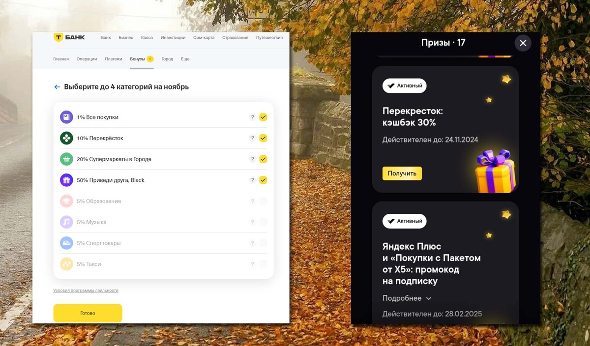 Т-Банк, похоже, решил наверстать упущенное и отошел от привычных 5%. В первый раз это было заметно в октябре, в ноябре же опять интересный кэшбэк: 10% на Перекресток.