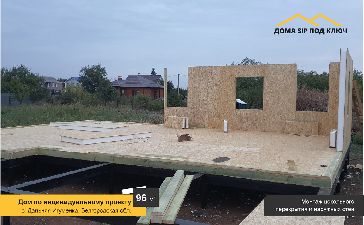 Мы снова в Дальней Игуменке🏡 Бригада ДСПК приступает к основному этапу строительства СИП-дома. ✅Фундамент готов, обвязка из бруса, на которую будет опираться конструкция дома, установлена. Для укладки цокольного перекрытия используются СИП-панели. Они соединяются методом «шип-паз» и дополнительно фиксируются саморезами. ✅После монтажа пола, приступают к возведению стен. В качестве отправной точки используют направляющий брус, который крепят по периметру, используя анкерные болты. Установка стеновых СИП-панелей начинается с угла дома. Первая панель выставляется по уровню с допустимым отклонением не более 1–1,5 мм. Вторая угловая панель соединяется с первой под прямым углом с помощью шурупов-саморезов. Стык панелей герметизируется монтажной пеной. ❗Это очень ответственный этап! Важно провести все расчёты с максимальной точностью, чтобы стены получились ровными. Для контроля угла в 90 градусов строители используют специальные измерительные инструменты, например, лазерный уровень. Хотите