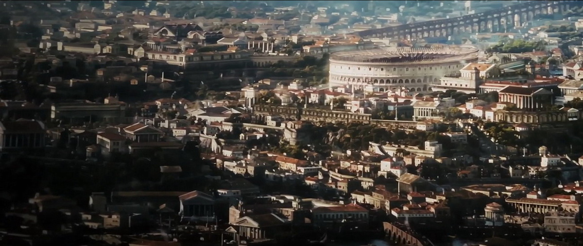 Что сказать о спецэффектах. Совершенно отвратительные бабуины. Либо я полный профан в зоологии, либо это какой-то вымерший вид кожистых собакообразных обезьян, не доживший до наших дней. Моя любовь и восторг – носорог. По-моему, это лучшее из графики, что есть в фильме. Вполне себе живой и натуральный). Очень красивы галеры в море, а вот штурм крепости почему-то не впечатлил, в «Царстве небесном» штурм Иерусалима смотрится масштабней и интереснее. Очень красива панорама Рима и ворота с Волчицей и Ромулом и Ремом.