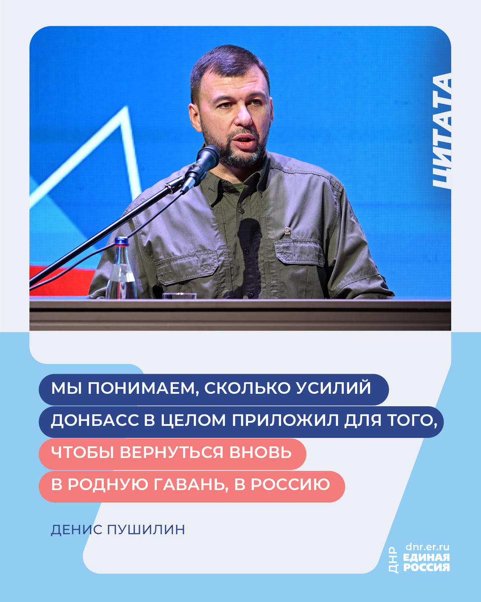 Денис Пушилин: Мы понимаем, сколько усилий Донбасс в целом приложил для того, чтобы вернуться вновь в родную гавань, в Россию