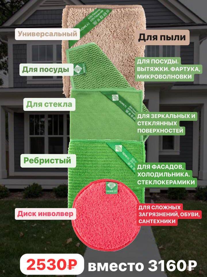 Готовый набор для чистого дома без бытовой химии! ❗️Ваша выгода: 630₽ Текстиль Green Fiber из специального рассеченного микроволокна работает ПРОСТО С ВОДОЙ, но на особенно вредных загрязнениях можно использовать наши средства для уборки с экологичным составом: пасту Mystik, гель для сантехники, спреи от жира и для акриловых поверхностей. ✅ Этот набор полностью закроет все пункты по уборке на 2 года и больше — именно такой срок использования всех файберов. P.S. Цвета файберов можно выбирать. Именно эти файберы позволяют сделать нашу жизнь более здоровой и экологичной, потому что этой продукцией мы можем полностью заменить бытовую химию дома! — для сухой уборки пыли/крошек и общей влажной уборки. Видео 710₽ 🔥до 15 ноября — 570₽ Зеленый, желтый, коралловый, голубой цвета. Купить Видео ✖️без хим.средств отмывает самую жирную сковородку; ✖️без железной губки, которая после первого же применения летит в мусорку, отмывает противень от жира и засохшей еды; ✖️без перчаток теперь можн