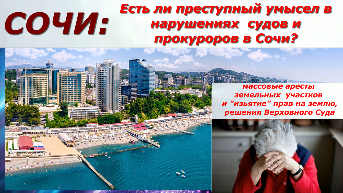 Давайте шуточно по рассуждаем в «стиле 90х», кто ответственный в данной, так и хочется сказать «схеме»?. Госорганы к делу, в качестве истцов, не привлечены, поэтому совершили ли они нарушения или нет «неважно»?(!) Прокурор «вне подозрений», он же заботится о «восстановлении» законности! Получается виновные «по умолчанию» (как говорят Ай-Ти-шники) сами граждане России! Гениально! То есть, получается заслуженные врачи, учителя, агрономы, ветераны труда, другие заслуженные люди получавшие участки в Сочи, за свои заслуги, а также люди выкупившие их и заплатившие за них свои «кровно-заработанные», виноваты «по умолчанию»?.