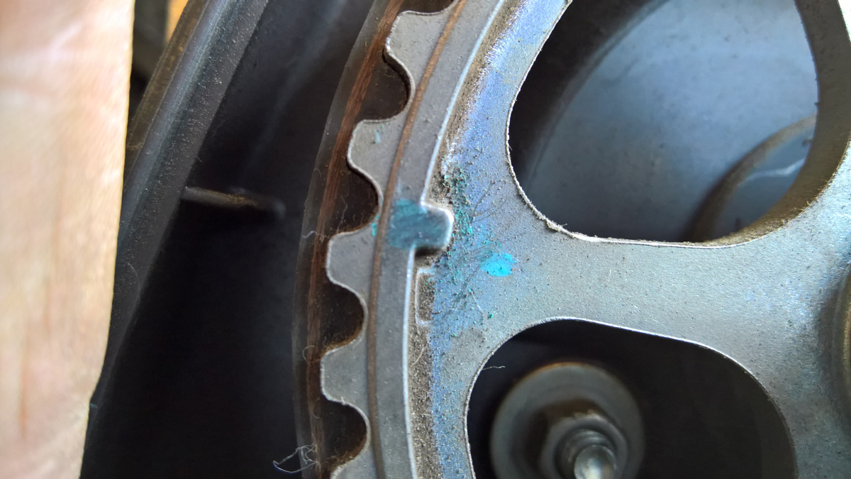 После того как сошлись обе метки и переднее колесо заблокировано (теперь можно не зависеть от меток на шкивах) от движения, приступаем к следующему;