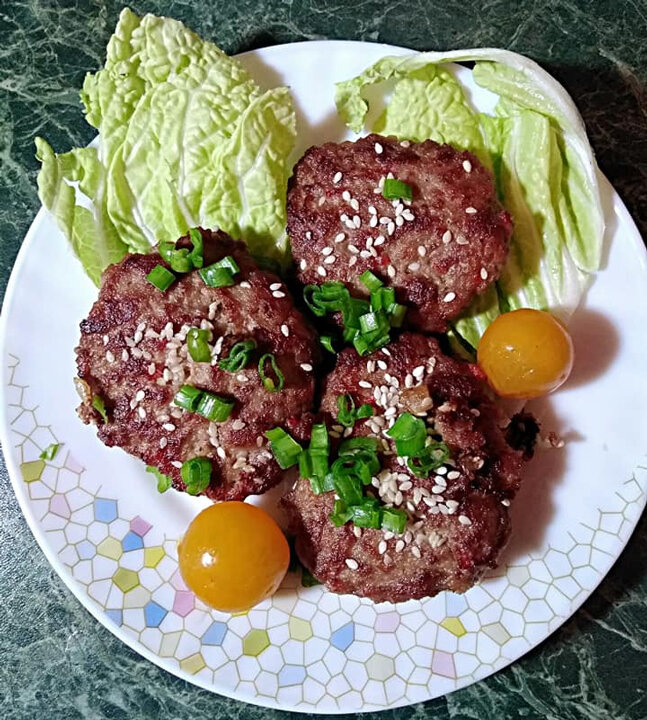 ✔ Любое мясо индейки - 300 г; ✔ Перец болгарский красный - 1 шт.; ✔ Лук репчатый - 1 шт.; ✔ Яйцо куриное - 1 шт.; ✔ Масло растительное – 1 ст. л.; ✔ Семена кунжута измельчённые – 20 г; ✔ Соль, черный перец - по вкусу; ✔ Зелень свежая – по вкусу. Моем, чистим и прокручиваем через мясорубку всё вместе (кроме семян кунжута). Формируя котлеты, обваляйте с двух сторон в кунжутной «крупе», и на сковородке обжарьте их с одной стороны до появления золотистого цвета. Затем переворачиваем на другую сторону, накрываем крышкой и тушим до готовности. Подаём со свежей зеленью. Котлеты получились очень вкусные, нежные и ароматные. КБЖУ на 100 г - 119/11,8/5,8/3,3. + 3 фото Рецепт на странице Автор рецепта – Юрий Иванович Расчёт КБЖУ сделан с помощью Telegram-чат-бота https://t.me/vesipitaniebot © Почтенный возраст Online и Рецепты для диабетиков