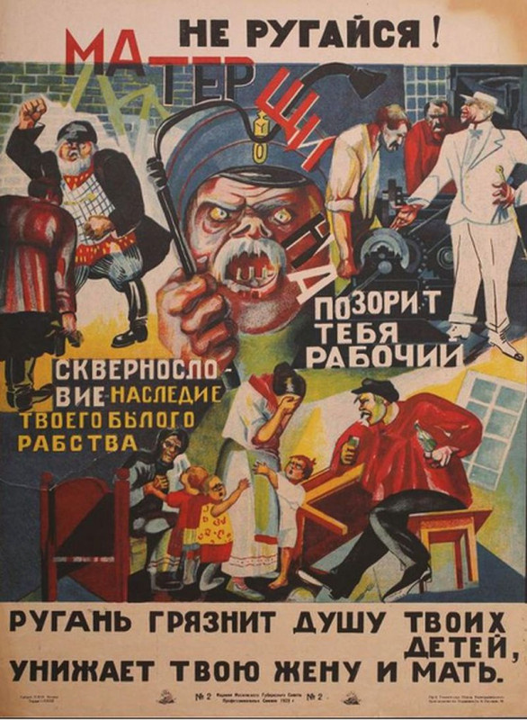 Продолжая тему о том, «как в СССР боролись с пережитками прошлого». К таким «пережиткам» была отнесена и матерная ругань. С одной стороны, революция несколько раскрепостила язык. В печати теперь могли появляться такие, например, прежде немыслимые рисунки со слегка завуалированной матерщиной.