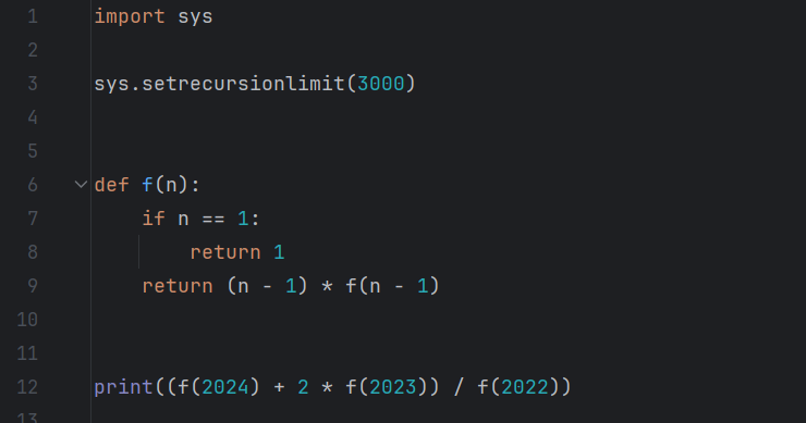Алгоритм вычисления значения функции F(n), где n – натуральное число, задан следующими соотношениями: Чему равно значение выражения (F(2024) + 2 × F(2023)) / F(2022)? Это задание быстрее решить руками (на мой взгляд). Посмотреть как решается задание 17 можно здесь. Весь курс подготовки к ЕГЭ с подробными описаниями и комментариями. Лайки и комментарии приветствуются.
