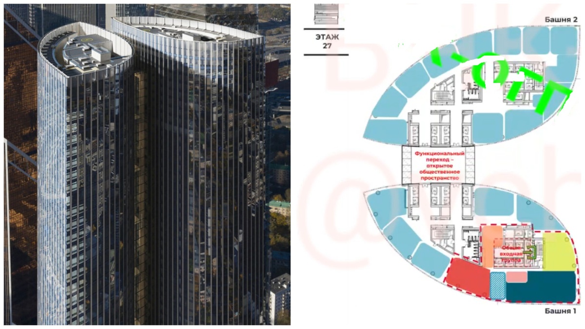 Офис Олега Белозерова займет два этажа в двух башнях. Они будут объединены видовым переходом, который позволил создать своего рода отдельную зону. Такие привилегии, как утверждают источники, уже сравнивают с кабинетами руководителей крупнейших госучреждений, таких как Лахта Центр и башни министерств России.