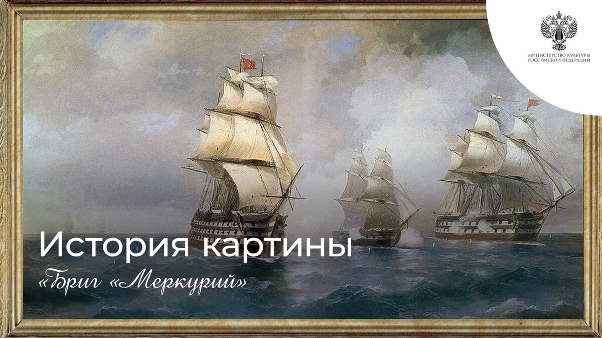 История картины «Бриг «Меркурий», атакованный двумя турецкими кораблями»