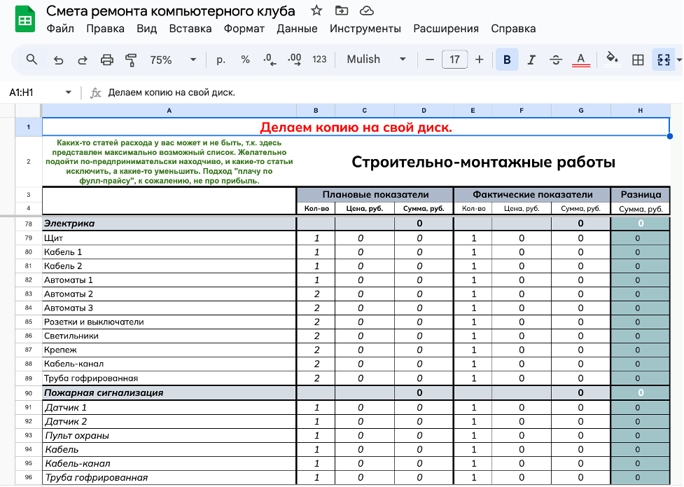 Друзья, я составил вот такую таблицу смета-ремонта, в которой прописаны все возможные статьи расходов при ремонте в компьютерном клубе, которую вы можете заполнить самостоятельно. Скачать ее можно абсолютно бесплатно, написав мне в Telegram: https://t.me/prohorov_ks, ну или можно заказать у меня таблицу, заполненную под ваш под ваш бюджет и параметры. Также можно за разумные деньги заказать консультацию по открытию клуба, например, по экономике клуба, смете открытия, финансовой модели, или по изучению целевой аудитории, или по маркетинговой стратегии, или по любым другим вопросам. А также можно взять полное комплексное сопровождение, консалтинг при открытии компьютерного клуба, чтобы вы совершили как можно меньше ошибок, открылись как можно быстрее и прибыльнее. А также мы с командой привлекаем инвестиции для открытия компьютерного клуба в Питере. Если у вас есть деньги и вы хотите доверить их профессионалом, то заполняйте форму: https://docs.google.com/forms/d/e/1FAIpQLScXC8zI8H481khX70vuCg7KNsyK_hC9Lq1mMKuu9Lban5TtJw/viewform?usp=sf_link, или также пишите мне в Telegram: https://t.me/prohorov_ks.