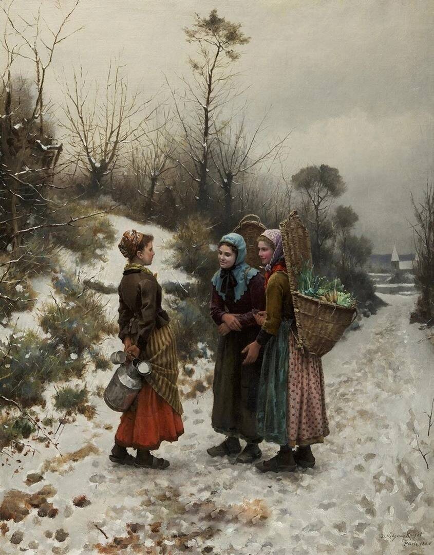 Знакомьтесь с художником: Дениэл Риджуэй Найт 1839-1924 гж американский художник-реалист, представитель жанровой живописи. Дэниел Найт создавал работы в разных жанрах: пейзаж, портрет, сцены с цветами и историческая живопись. В каждой работе художника сочетается удивительное мастерство в изображениях самых мелких деталей и яркость, красочность и «воздушность». Чтобы овладеть искусством передачи цвета Дэниел Найт изучал игру света и тени. Он построил застекленную студию, с целью видеть и изучать нерукотворные красочные картины природы, и жарким летом и в период мертвой зимы. Дэниел Найт наблюдал за бликами луны на реке Сене, на яркие краски цветов в саду в полдень в гармонии с лицами девушек. На картинах художника все сцены изображены весьма подробно, при этом особое внимание уделял изображению реалистичного ландшафта. На картинах Дениэл Найт изображена многоликая красота природной флоры, юные женские лица в окружении великолепных пейзажей и цветников.на картинах природа восприни