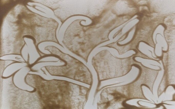 С целью прояснения актуального состояния мамы было предложено поработать на песочном столе и выполнить упражнение метода целенаправленной фантазии «Цветок», которое я изучила на вебинаре Ольги Никитиной: клиенту предлагается представить цветок, описать его, условия его существования, а далее нарисовать полученный образ на световом столе.