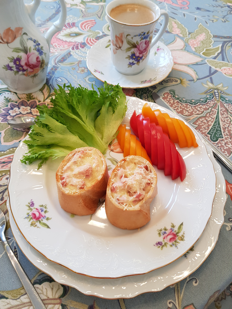 Доброе утро, дорогие друзья! Сегодня я предлагаю вашему вниманию завтрак из простых ингредиентов, необычным является оформление, которое особенно оценят дети. Для приготовления нам понадобятся: багет 1 штука, 4 яйца, 200 грамм докторской колбасы, 50 грамм сыра пармезан, 50 грамм греческого йогурта, 1 столовая ложка подсолнечного масла, щепотка соли и приправа прованские травы. Приготовление: в ёмкость разбить яйца, посолить и посыпать приправой. Добавить йогурт, перемешать вилкой. Нарезать колбасу кубиком и выложить в ёмкость с омлетом. Нарезать багет «пеньками» высотой 4 сантиметра. Удалить 3 сантиметра мякиша из каждого пенька. Заполнить заготовки из багета омлетом с колбасой. Натереть сыр. Смазать растительным маслом с помощью кулинарной кисти сковороду и установить на нее пеньки. Посыпать пеньки сыром. Запекать в духовом шкафу 30 минут на режиме верхний и нижний нагрев при температуре 170 градусов Цельсия. Дополнить «пеньки» растительностью в виде листьев салата и томатов. Приятног