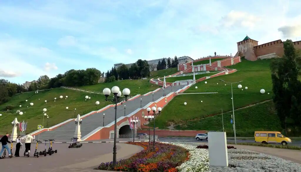 • Чкаловская лестница — символический спуск к набережной, открывающий великолепный вид на Волгу.