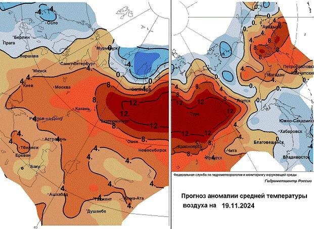 В Гидрометцентре России опубликовали обзор атмосферных процессов, ожидаемых с 15 по 18 ноября. Омская область попала в аномальную зону. Температура воздуха в регионе будет на восемь градусов выше многолетней нормы. Синоптики объясняют потепление атлантическим циклоном, который медленно перемещается со стороны Баренцева моря в юго-восточном направлении. Под его влиянием на большей части Сибири прогнозируются снег, в том числе мокрый, гололёдные явления, местами метели при ветре в порывах до 12—17 м/с. Добавим, что в прошлом году ноябрь в Омске также был аномально тёплым. Температура воздуха была выше климатической нормы на 7—10 градусов.