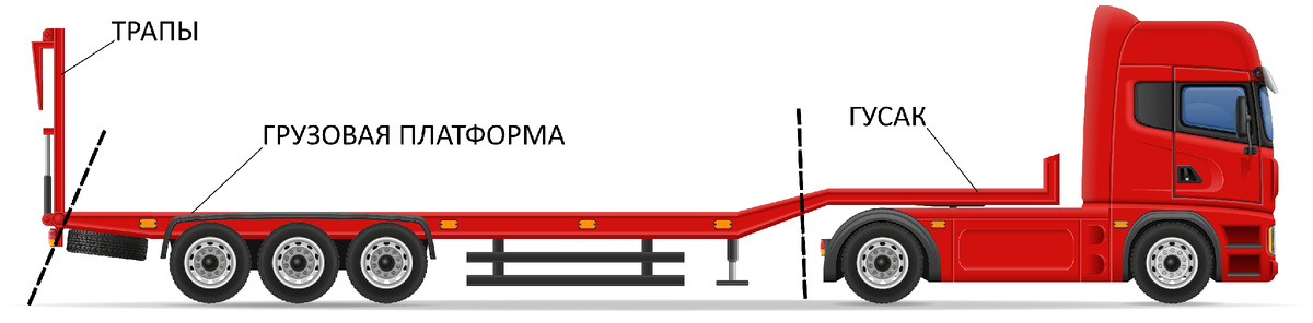 Так же гусак можно использовать для перевозки техники. Для заезда на гусак используются обычные приставные трапы. Посадочные места под них уже установлены. Для увеличения площади под технику можно демонтировать борта.