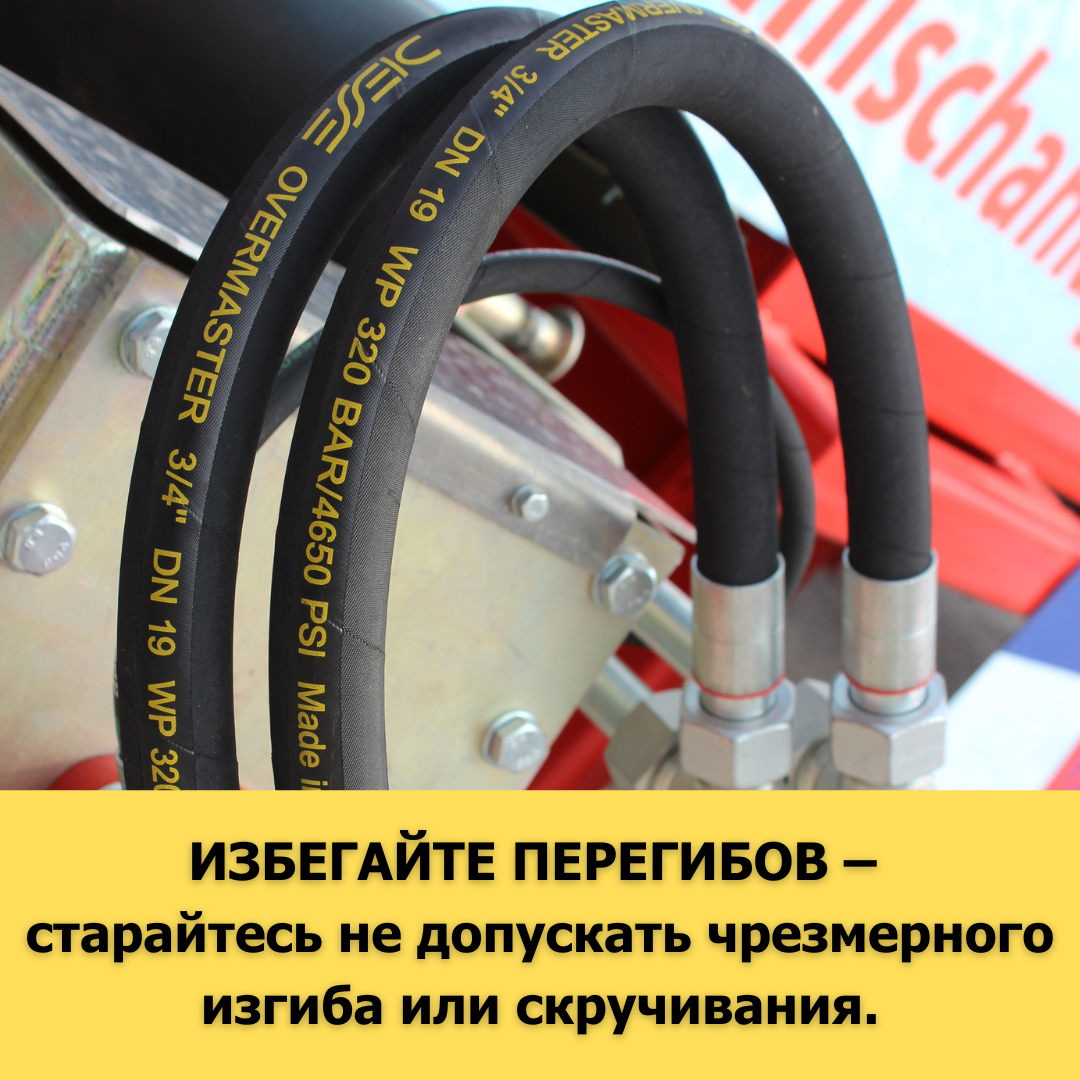 Неправильная установка или эксплуатация шлангов с перегибами или скручиванием приводит к увеличению нагрузки на материал и снижает его срок службы. Убедитесь, что шланги установлены в соответствии с рекомендациями пр