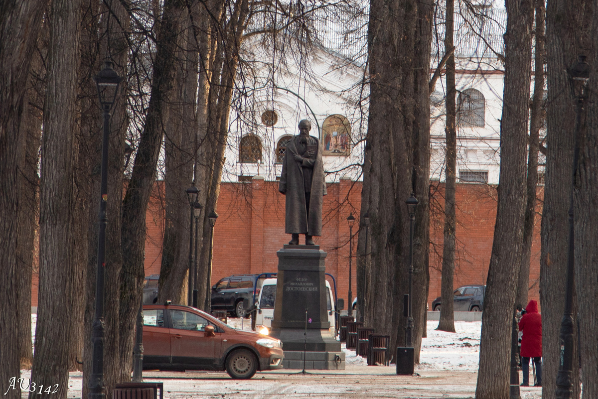Увековечить память великого писателя, философа и публициста в Перми собирались давно. Постановление об установке памятника было подписано главой города в 2019 г. Установка планировалась в 2021 г. к 200-летию со дня рождения Фёдора Михайловича. Деньги на памятник собирали всем миром. Годы мытарств и согласований, борьбы с безразличием и даже противодействием наконец закончились. Очень здорово, что в Перми знают, любят и ценят Достоевского... В день рождения писателя я решил поснимать на торжественном открытии памятника. К скверу шёл пешком. Вы будете смеяться, но когда я подходил к очередному перекрёстку, на светофоре загорался красный свет...