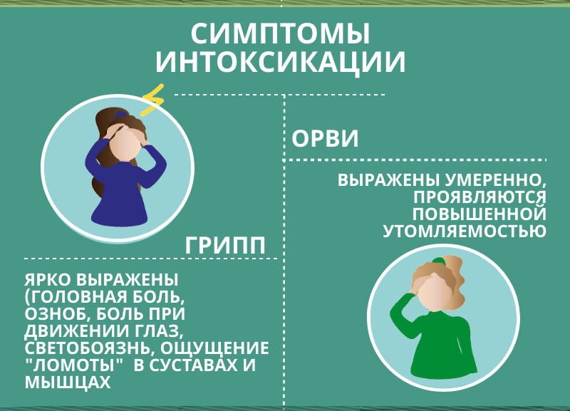 О начале интоксикации при ОРВИ могут свидетельствовать следующие симптомы: