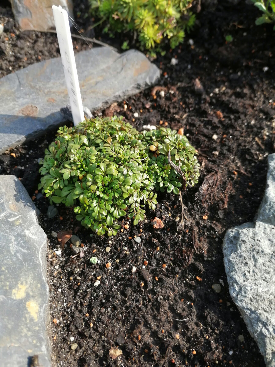 Единственное растение, которое я сумела вырастить из семян и которое, внезапно, вполне благополучно перезимовало. Из чего я делаю вывод - не так страшны альпийцам морозы без снега и ветры, как вода. Все-таки мне, видимо, удалось сделать ту самую отводящую воду подушку. Потому что вот -