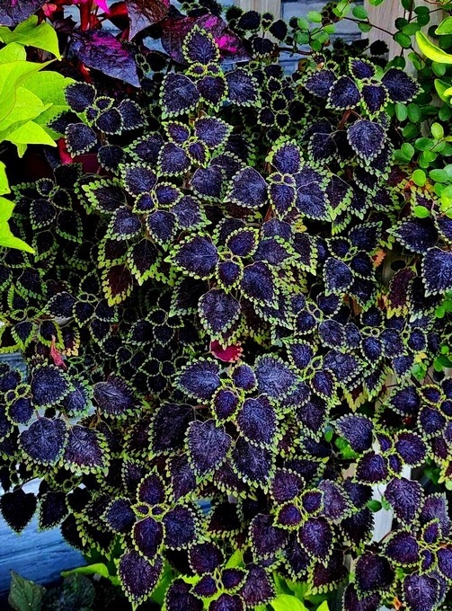 Колеус Этот декоративно-лиственный цветок, который долгое время был забыт, вновь обрел популярность, и это неудивительно. Такое разнообразие окрасок листьев вряд ли найдется у какого-либо другого растения. В народе его часто называют «крапивкой» (или «крапинкой»), поскольку его листья напоминают листья крапивы. Некоторые ошибочно полагают, что колеус – однолетник. С одной стороны, это справедливо для нашего климата, где он не переносит зиму и крайне чувствителен даже к легким заморозкам; его листья очень нежны. Однако с наступлением холодов его можно перенести в дом или размножить черенкованием. Размножение колеуса происходит довольно просто: достаточно срезать здоровые крепкие черенки и поместить их в воду. Корни образуются быстро. Также можно сразу посадить черенок в землю. К составу почвы колеус непритязателен. Уход за ним несложен. Главное – своевременный полив и регулярные подкормки. Если есть возможность организовать дополнительное освещение, например, с помощью стеллажа с ламп