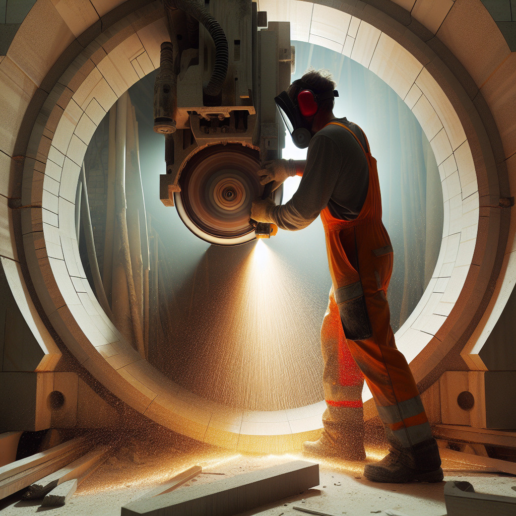 Алмазная резка проемов требует строгого соблюдения мер безопасности и определенных навыков для обеспечения эффективности работы. Прежде всего, обязательна проверка исправности оборудования перед началом работы. Использование защитных средств, таких как перчатки, очки, наушники или беруши, необходимо для избежания возможных травм и повреждений здоровья.