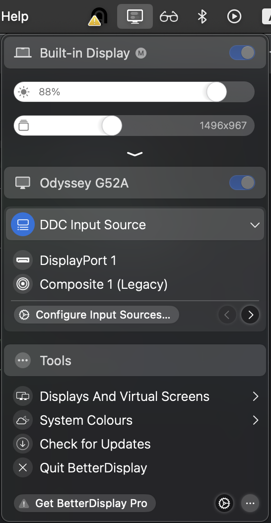 В BetterDisplay можно настроить быстрое переключение между HDMI и Display Port: