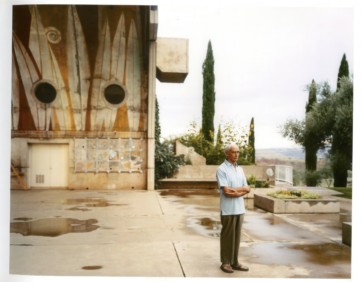 Пожилой мужчина на фоне брутального здания, явно отсылающего к советскому модернизму. Кажется, что его стену даже украшает мозаика! Скажи мне, что дело обстоит в Грузии и я бы легко в это поверил!