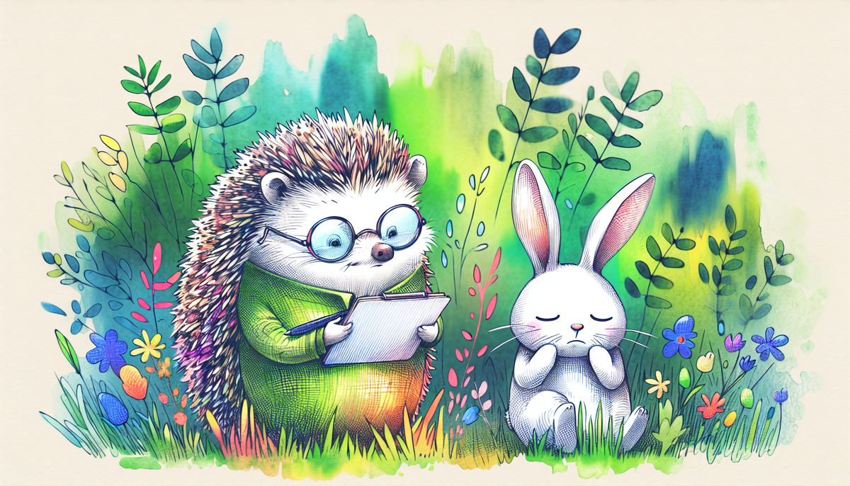В одном волшебном лесу, наполненной яркими красками, жили трое замечательных друзей: зайчиха Мила с веселым розовым бантиком, ёжик Топи в очках и белочка Ласка. Каждый день они отправлялись исследовать свой лес, который был полон удивительных существ и растений. Однажды утром, когда солнце нежно пробивалось сквозь листву старого дуба, Мила наслаждалась прогулкой в цветах, а Ласка увлеченно собирала орехи. — Какой чудесный день! — воскликнула Мила. — Сегодня мы обязательно найдем что-то особенное! Топи предложил прогуляться к цветочному полю на самом краю леса, где, по слухам, росли самые яркие цветы. Но прежде чем они успели покинуть пределы своей полянки, они услышали всхлипывания. Друзья поспешили на звук и обнаружили маленького зайчонка, который сидел под кустом. Его шерстка была бледно серой, словно весь цвет исчез из нее. — Что с тобой? — спросила Мила, не в силах сдержать сочувствие. — Я потерял свой цвет, — ответил зайчонок. — Раньше я был самым ярким зайцем в лесу, а теперь ста