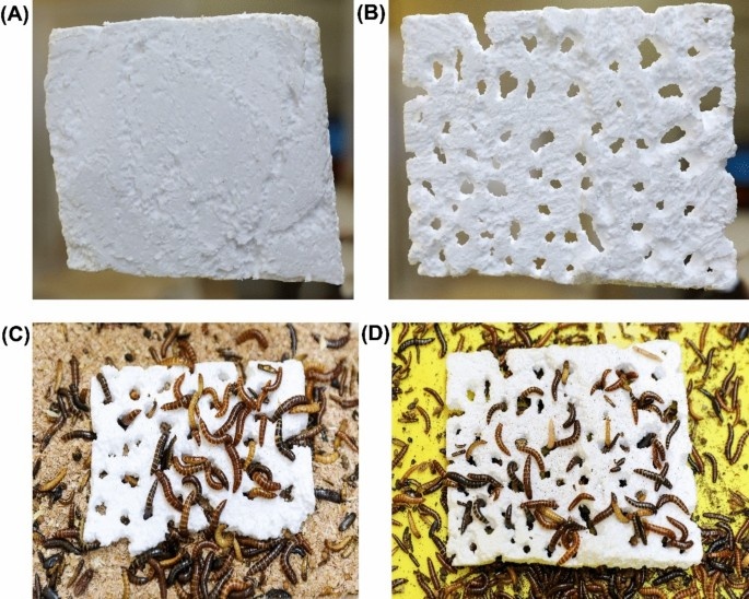 Недавно ученые обнаружили, что личинки мучного червя могут питаться полистиролом. Полистирол, хорошо известный как пенопласт, широко используется в пищевой и электронной, а также промышленной упаковке. Традиционные методы переработки дорогостоящие и могут приводить к образованию загрязняющих веществ, поэтому изучение биологических способов утилизации этого пластика становится все более актуальным. Группа ученых из Международного центра физиологии и экологии насекомых, обнаружили, что личинки кенийского мучного червя могут поедать полистирол и содержат в своих кишечниках бактерии, помогающие разлагать этот материал. Мучной червь — это личинка жука Alphitobius. Идеальные условия для его роста и размножения — теплые помещения с постоянным доступом к пище. Хотя считается, что мучные черви родом из Африки, их можно встретить во многих странах по всему миру. Однако вид, особенности которого установили ученые, может быть подвидом рода Alphitobius. Сейчас проводятся дополнительные исследования