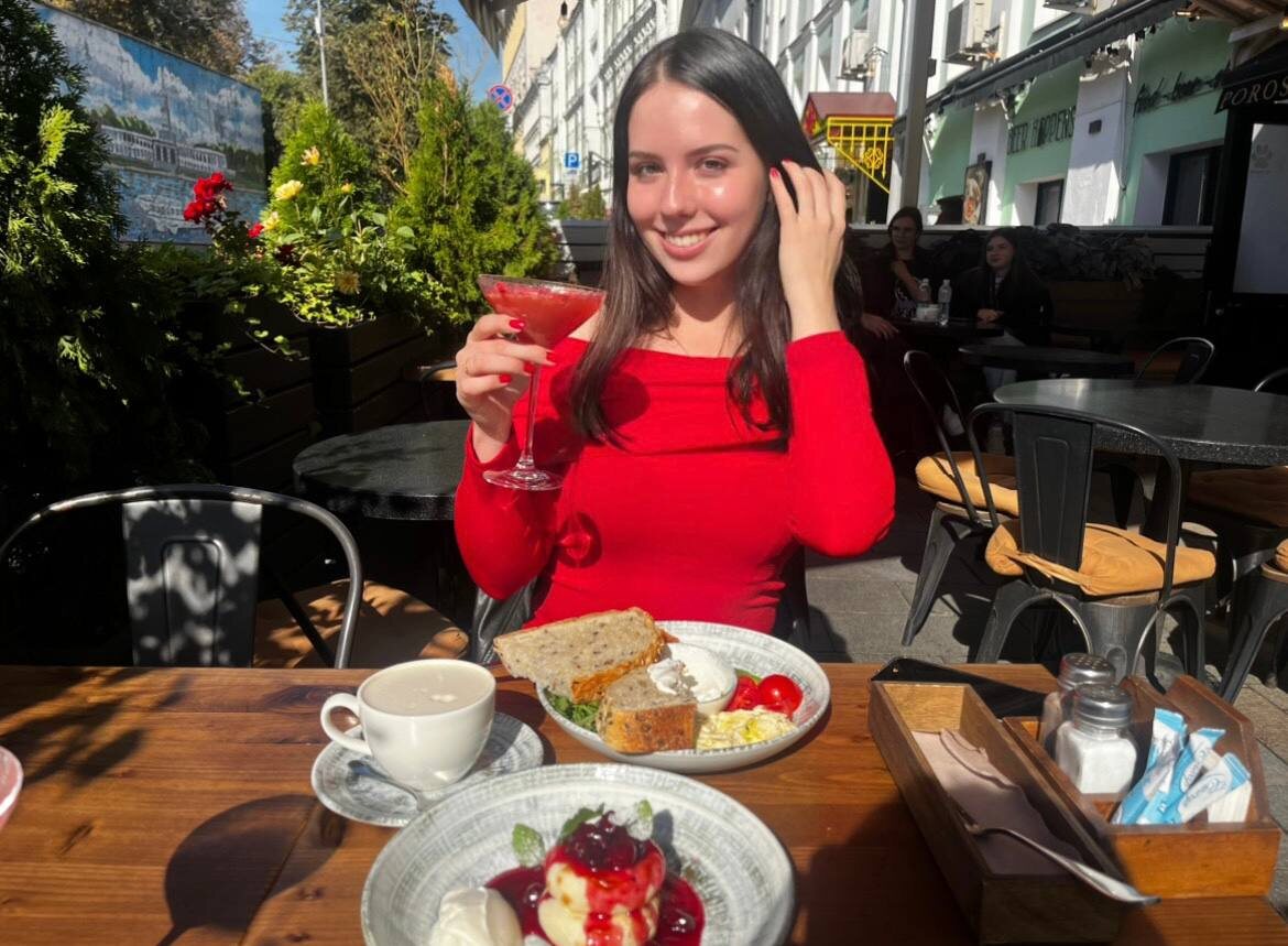 Приветствую на канале. В Москве пошел снег, а значит самое время вспомнить наитеплейший сентябрь, когда солнце было ярче, трава зеленее, да и вообще мир был лучше. Собрались мы с подружкой на завтрак и я искала место в центре, где к завтраку бесплатно наливают, невысокие цены и симпатичная веранда. Остановились на баре "Пороселло" на Китай-городе, который находится по адресу Лубянский проезд 25с2, рейтинг на Яндекс.Картах 4,6 на основании более 1700 оценок. Внутреннее помещение очень небольшое, всего несколько столиков и маленькая барная стойка, а вот веранда получилась большой, даже больше, чем основной зал. Кстати, она находится под брезентовой крышей на случай дождя, но от солнца это никак не спасает - палит нещадно! Интерьер на вид очень недорогой - простые деревянные столы и стулья, на которых лежат подушки для большей мягкости, есть также несколько диванчиков и креслиц. Украшений почти никаких за исключением озеленения веранды по периметру и различных ламп во внутреннем зале.