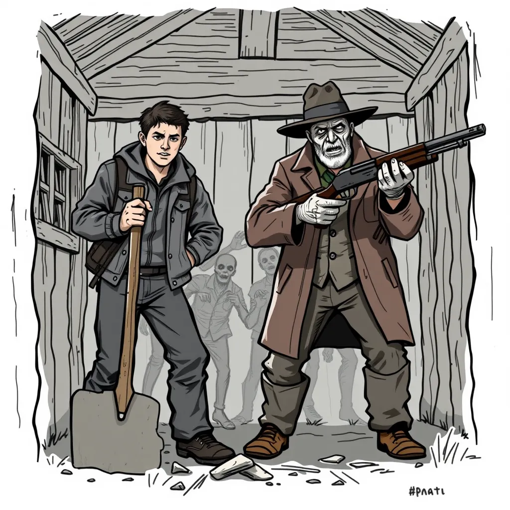 Прошел момент, когда зомби начали заполонять внутреннее пространство. Я вытолкнул еще одного лопатой, успев закрыть дверь, когда я увидел, как Борис, словно ветеран, наставлял дробовик на головы по очереди, стреляя в оставшихся врагов.