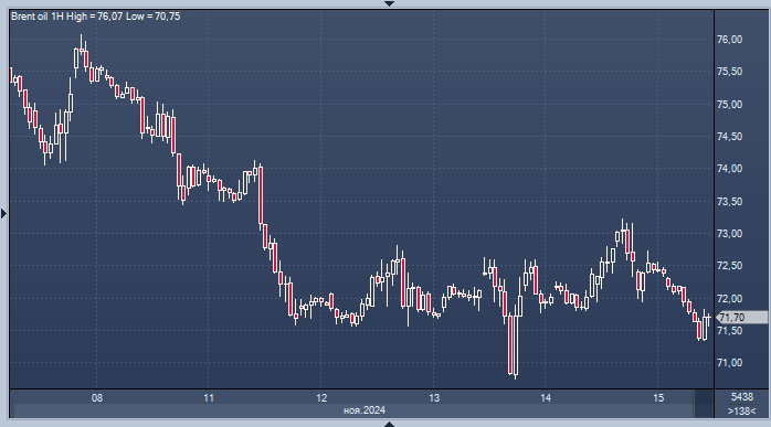 Нефть ожидает еженедельного снижения из-за неопределенности вокруг снижения ставки ФРС и опасений по поводу спроса в Китае График нефти марки Brent интервалами в 1 минуту В пятницу цены на нефть снизились, поскольку инвесторы проанализировали признаки того, что спрос в Китае, который является крупнейшим импортёром сырой нефти, продолжает оставаться на низком уровне. Это связано с неравномерным восстановлением экономики страны и ожиданиями того, что Федеральная резервная система США не будет так активно снижать процентные ставки. Фьючерсы на нефть марки Brent упали на 1,31%, или на $0,95, до $71,62 за баррель к 08:25 по Гринвичу. Фьючерсы на американскую нефть марки West Texas Intermediate снизились на 1,3%, или на $0,9, до $67,81. Ожидается, что за неделю нефть марки Brent упадёт на 3,06%, а нефть марки WTI — на 3,67%. «Слабость цен на нефть в середине дня, по-видимому, отражает общее снижение настроений по отношению к риску», — отметил Йеп Джун Ронг, рыночный стратег IG, в своём элект