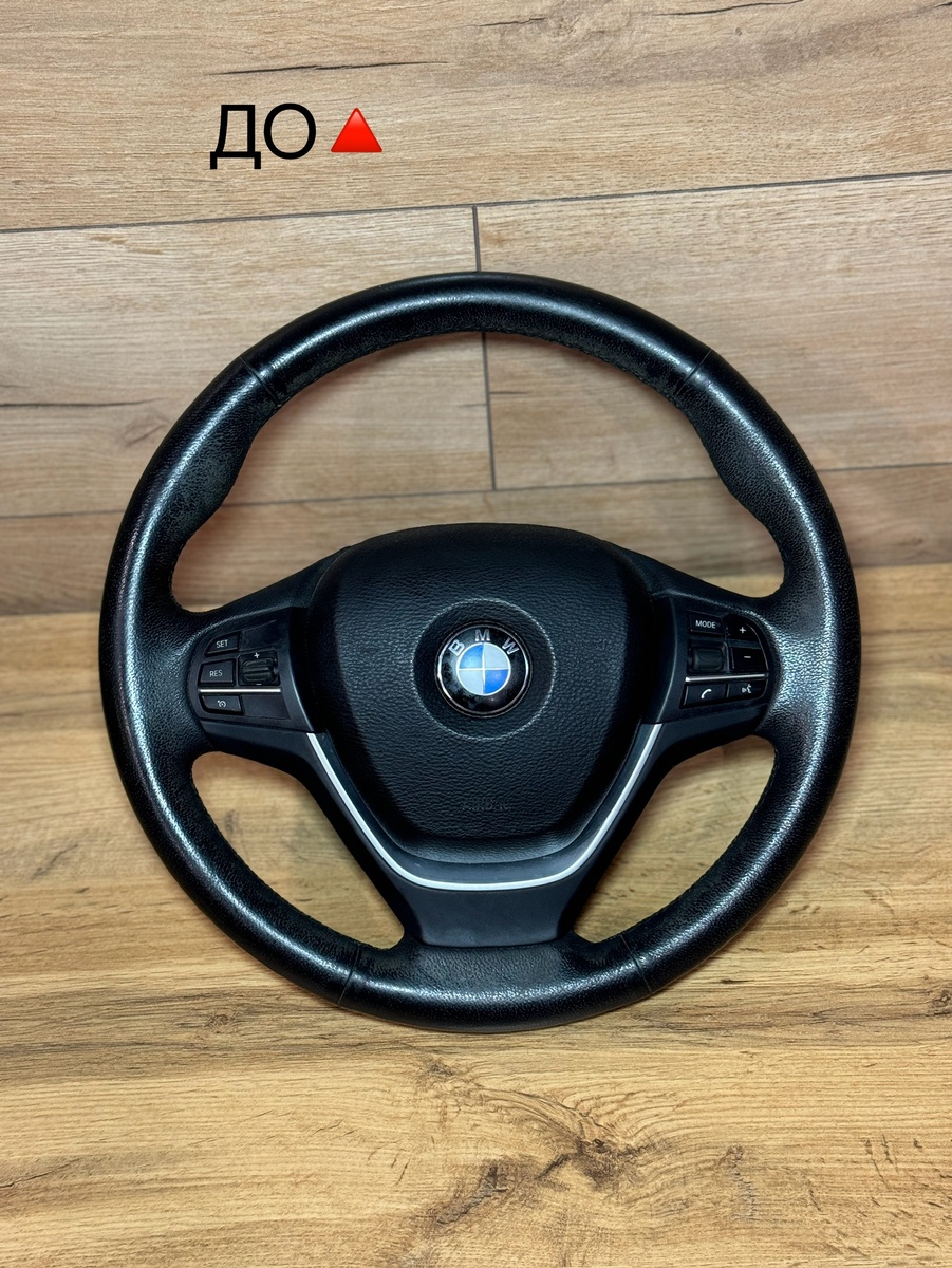 Заводская оплётка руля BMW X3 пришла в негодность и потеряла свой привлекательный внешний вид. Перешили руль по индивидуальному дизайну: