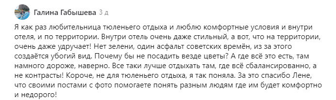Рекомендую отель тем, кто хочет провести свой отпуск в тишине, кому нужен релакс, спокойствие. Кто хочет каждый день смотреть фильм про море, сидя на веранде ресторан с чашечкой кофе. Да, это бюджетный вариант, но очень милый, симпатичный, со всеми удобствами. Здесь будете жить, как в деревне у бабушки. Персонал очень приветливый и доброжелательный, относятся, как к родным. Можно поехать парой, без пары, с детьми, с родителями, да хоть как))