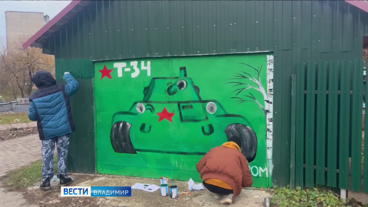 Творчески и по-боевому молодые художники подошли к вопросу благоустройства популярного у горожан места отдыха. На воротах гаража, неподалеку, то и дело появлялись неприличные надписи и подозрительная реклама. Волонтеры решили положить этому конец и расписали железный "холст" по-своему. Изобразили танк Т-34, символ силы, мужества, напоминание о героических страницах истории. При всей своей простоте рисунок обращает на себя внимание и подчеркивает важность искусства в общественной жизни, говорят художники. ГТРК "Владимир"